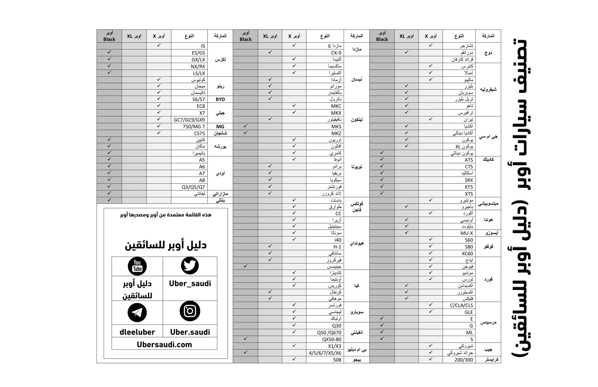 فئات سيارات اوبر السعودية